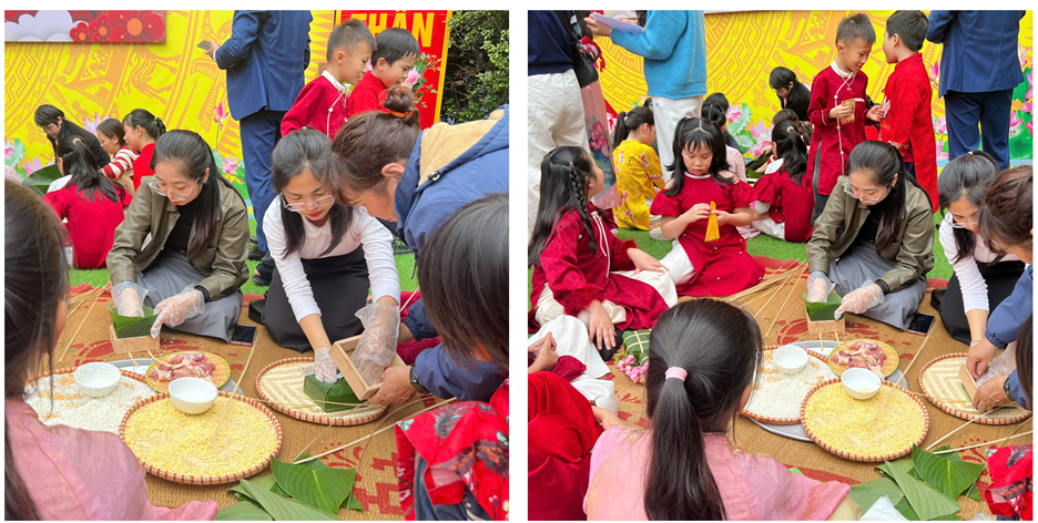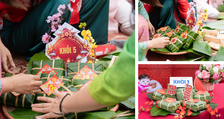 Mở đầu Lễ hội là các tiết mục văn nghệ chào đón xuân về đặc sắc của thầy và trò nhà trường” Ngày Tết quê em” của tập thể lớp 5A8, 1A1 “Tình ca mùa xuân” của cô giáo Doãn Ngọc Thùy và bác Quang Đức, mashup “ Tết yêu thương” của học sinh lớp 1A2, 1A12 với giai điệu rộn ràng, vui phới phới, các em học sinh hò reo theo tiếng nhạc, tiếng vỗ tay khi nghe giai điệu mùa xuân cất lên, tiếng chuông ngân vang khắp phố phường, tiếng cụ già trẻ em cười nói khi thấy mai vàng khoe sắc…. Xuân đã về với ngôi trường mang tên vị anh hùng nhỏ tuổi Trần Quốc Toản. Tục gói chưng ngày Tết đã trở thành nét văn hóa truyền thống của dân tộc Việt Nam, được lưu truyền qua nhiều thế hệ người Việt, thể hiện nét đẹp của nền văn minh lúa nước. Mỗi khi Tết đến Xuân về, người người, nhà nhà lại gói bánh chưng ăn Tết, dâng bánh lên bàn thờ tổ tiên. Trong Lễ hội Xuân của trường tiểu học Trần Quốc Toản không khí phần thi gói bánh chưng có sự khác biệt và đặc sắc, gạo, đỗ xanh, lá dong, tiêu, hành …được các bác phụ huynh chuẩn bị chu đáo, dưới bàn tay thành thạo từng chiếc bánh chưng được hoàn thành vuông vắn, chắc tay và được trang trí đẹp mắt, sinh động ở cả 5 khối.
