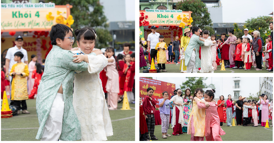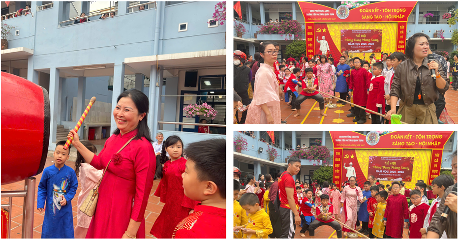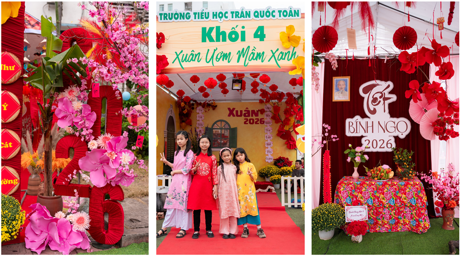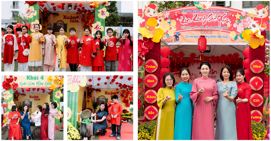 Lễ hội Xuân của trường Tiểu học Trần Quốc Toản được tổ chức chiều ngày 6/2/2026 với chủ đề: Mừng Xuân Bính Ngọ - Mừng Đảng Quang Vinh với các hoạt động bổ ích, thú vị, tạo ra sân chơi giao lưu, gặp gỡ, tái hiện lại phiên chợ tết. Với tinh thần sáng tạo, nhiệt huyết của thầy trò, sự kết nối, đồng lòng của các bậc cha mẹ học sinh, sự quan tâm chỉ đạo của các bác lãnh đạo địa phương đã làm nên một Tết Xuân ấm áp, đạm hương vị cổ truyền. Đến dự và chung vui với hoạt động ý nghĩa tại Lễ hội Xuân có bác Ngô Trí Quang – Trưởng ban đại diện cha mẹ học sinh nhà trường, Ban giám hiệu và toàn thể các thầy, cô giáo trong nhà trường.