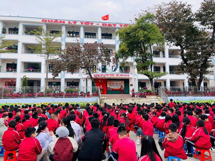 Tiếp nối chương trình, đồng chí Phó Hiệu trưởng nhà trường đã trình bày báo cáo tổng kết học kỳ I. Báo cáo đã khái quát đầy đủ những kết quả nổi bật mà nhà trường đạt được trong công tác dạy và học, rèn luyện đạo đức, xây dựng nề nếp học sinh cũng như các phong trào thi đua.
