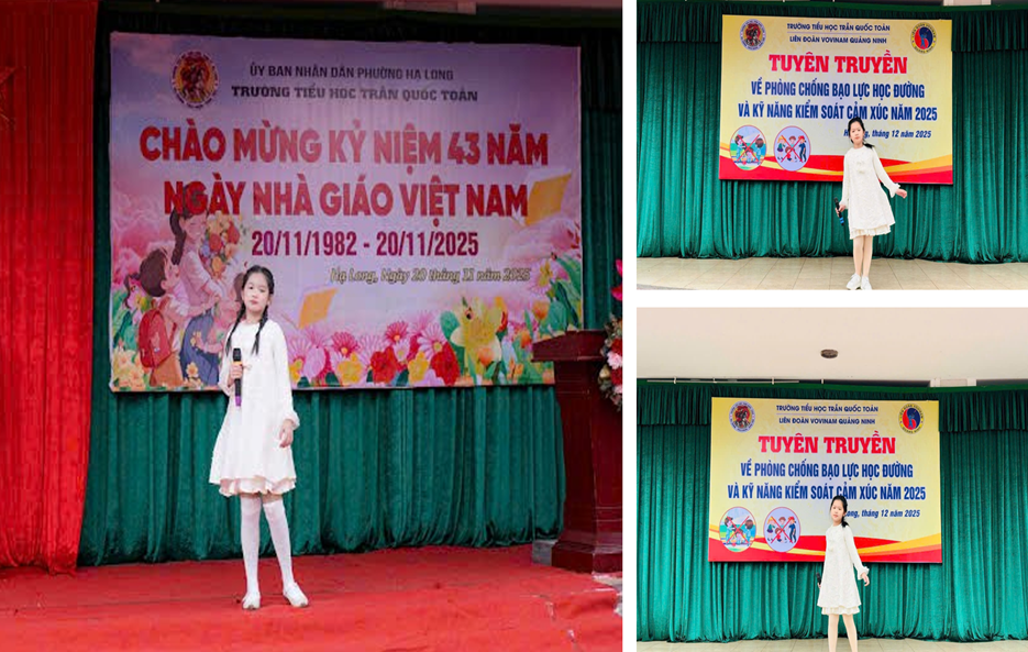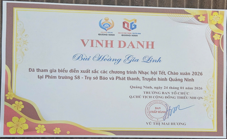 Liên đội trường Tiểu học Trần Quốc Toản vô cùng tự hào và chúc mừng hai tài năng nhí vừa xuất sắc nhận Giấy khen và được tuyên dương từ Đài Phát thanh và Truyền hình tỉnh Quảng Ninh vì đã tham gia biểu diễn xuất sắc các chương trình nhạc hội Tết, chào xuân 2026. ✨Bạn Vy Nguyễn Anh Thư – Lớp 5A8 ✨Bạn Bùi Hoàng Gia Linh – Lớp 1A1 Với chất giọng trong sáng, mượt mà và phong cách biểu diễn tự tin, hai "họa mi" của chúng ta đã chinh phục được khán giả nghe đài, các bậc phụ huynh, các thầy cô giáo và các bạn học sinh, đó là niềm vinh dự lớn lao cho gia đình và nhà trường. Thật tuyệt vời khi biết rằng Anh Thư và Gia Linh không chỉ là những "ngôi sao" trên truyền hình mà còn là những "hạt nhân" nòng cốt, đóng góp những tiết mục văn nghệ ấn tượng trong mọi hoạt động của nhà trường vào các dịp Lễ lớn. Lễ khai giảng năm học mới với ca khúc” Ngày đầu tiên đi học”Tiếng hát trong trẻo của các em như lời chào năm học đầy hứng khởi, tiếp thêm động lực và niềm vui cho thầy cô cùng bạn bè bước vào hành trình tri thức. Lễ hội trung thu với ca khúc” Cây đa quán dốc” vừa bắt tai vừa rộn ràng, Lễ tri ân ngày nhà giáo Việt nam 20/11 với ca khúc” Đi học xa” bằng giọng ca mượt mà, uyển chuyển, hai bạn đã thay lời muốn nói của hàng nghìn học sinh, gửi gắm lòng biết ơn chân thành đến những "người lái đò" thầm lặng. Hay một Lễ hội Xuân với ca khúc” Ngày Tết quê em” với sự vui tươi, hồn nhiên trong cách biểu diễn của "họa mi" nhỏ Gia Linh hay sự chuyên nghiệp của đàn chị Anh Thư đã mang hơi thở mùa xuân, sự may mắn và sức sống tràn đầy đến trường Tiểu học Trần Quốc Toản. Tiếng hát của hai em chính là sợi dây kết nối, là "chất xúc tác" quan trọng làm nên cảm xúc cho mỗi sự kiện nổi bật của nhà trường. 🌈 Đây không chỉ là thành quả của sự nỗ lực, say mê luyện tập của các em mà còn là minh chứng cho phong trào văn nghệ sôi nổi của Liên đội chúng ta. Hy vọng tấm giấy khen sẽ là nguồn động lực để Anh Thư và Gia Linh tiếp tục bay cao, bay xa hơn nữa trên con đường nghệ thuật! Và sắp tới trong cuộc thi họa mi vàng cấp Tỉnh hãy cùng chờ đón các sản phẩm đặc sắc của hai giọng ca nhí đầy triển vọng nhé.